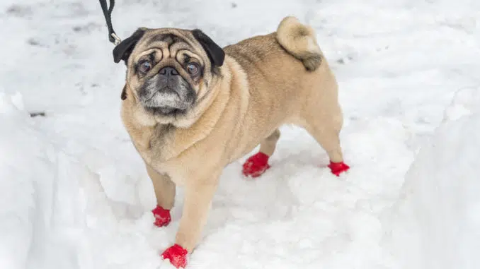 Hundskor som kan användas under vintern ska ha ett bra skydd mot köld och väta. Det är också bra att skorna har högt skaft så att det inte kommer in snö i skon. Vi kan rekommendera Basic Paws Fleeceskor som passar väldigt bra på vinterväglag.